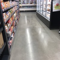 Ponçage béton quartzé dans un supermarché. Bretagne. Objectif: faciliter l'entretien du sol, réduction du bruit car pas de joints de carrelage, Un magasin plus lumineux.